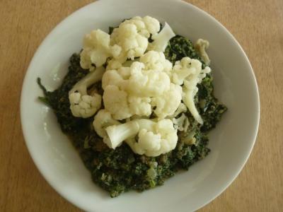 Blumenkohl auf Amaranth-Spinat