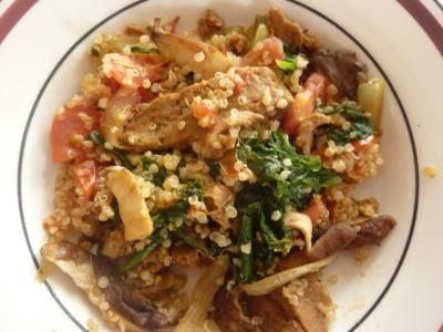 Tipp: Morgens gleich mehr Quinoa zubereiten und den übrigen Teil mittags oder abends für Seitan-Shitake-Austern-Pilz-Schmaus o.ä. verwenden.